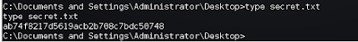 ¡El ataque ha tenido éxito! En el handler que dejamos a la escucha tenemos un intérprete Meterpreter funcionando con permisos de sistema. Hemos conseguido acceso total a la máquina. Dado que el objetivo era conseguir un flag como prueba de nuestro éxito, abriremos un intérprete de comandos de Windows con nuestra conexión Meterpreter para buscarla. La encontraremos en el escritorio del usuario Administrator.