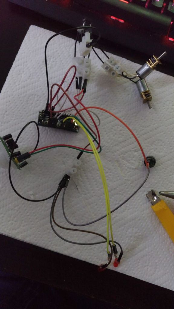 En este punto, el montaje depende mucho de vosotros. Podéis hacerlo con ayuda de las regletas de electricista como os comentaba más arriba o echarle valor y soldarlo todo. Usar una (mini)breadboard para enganchar todo o ir a las bravas como yo (aunque sea porque os veáis sin una minibreadboard como me vi yo). Up to you. Así tiré yo:
