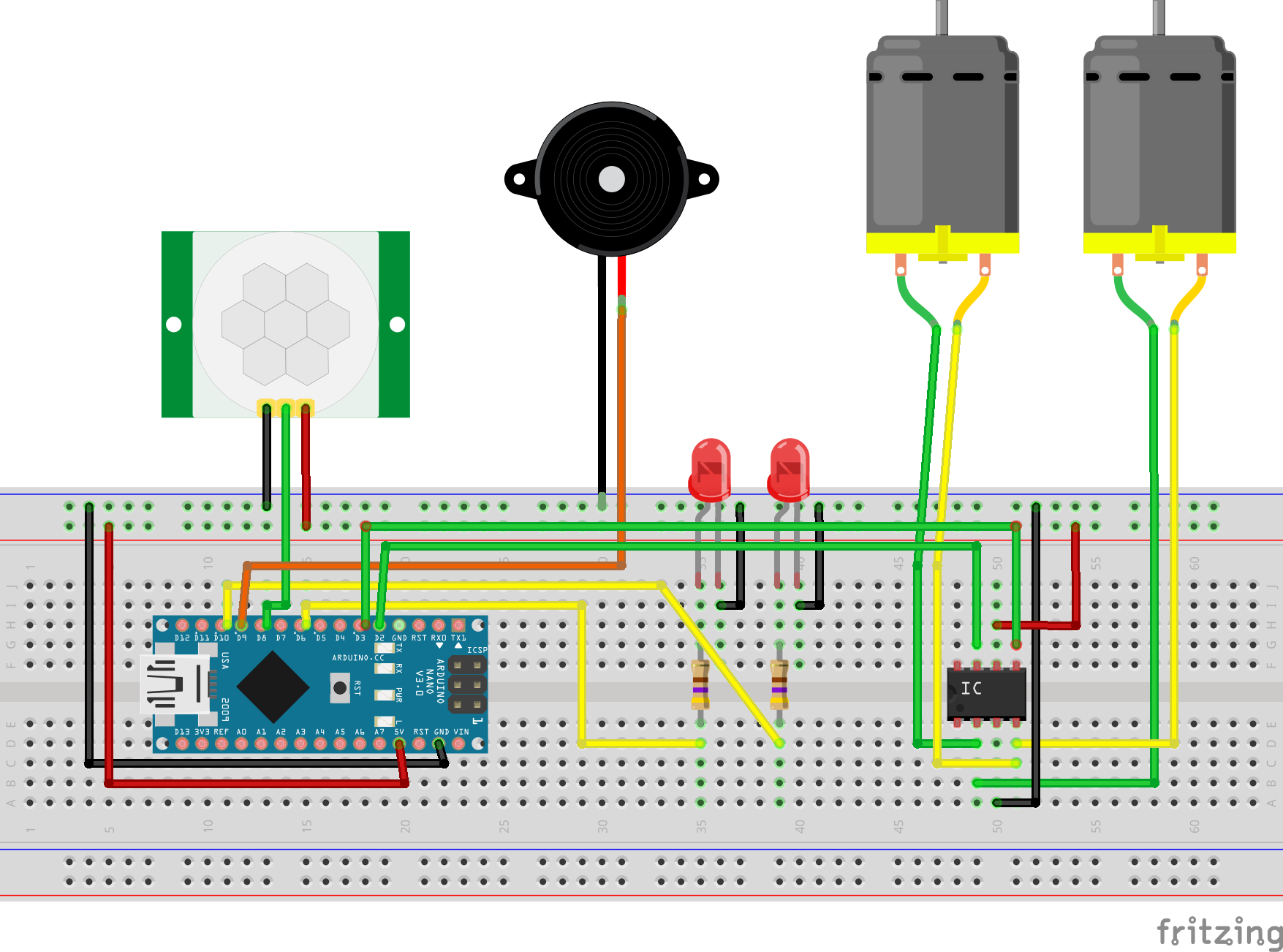 - Dos leds rojos, con dos resistencias (470 Ohmios o similar).