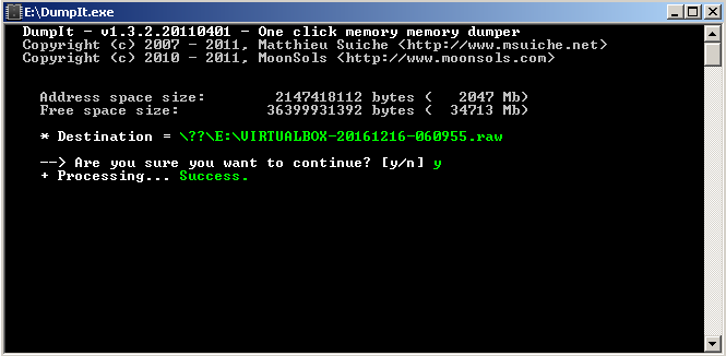 Para ello, primero adquirió la memoria RAM del Sistema, usando la herramienta DumpIt.