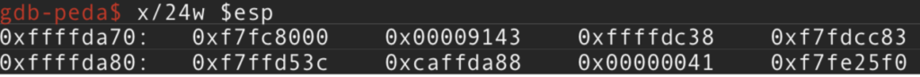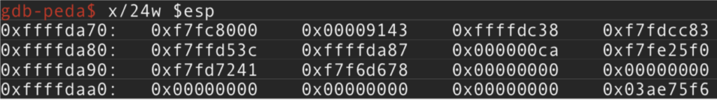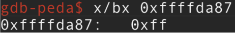 Pero a nosotros nos interesa el contenido ya que al decrementar (512/2)+5 hemos movido el puntero en la dirección 0xffffda87. Por tanto sabiendo donde se almacena en el STACK y cuanto hay que decrementar para saber donde poder escribir con \xca el Byte mas significativo, lo tenemos hecho. En otras palabras se mueve el contenido de ESP+0x14 que justamente es el resultado del decremento realizado a ese puntero siendo la dirección de memoria del stack, a EAX, y si sabemos que su contenido coincide con la dirección del puntero donde va a realizar la escritura de \xca, nos daremos cuenta que se hace la escritura justo a si misma en el Byte mas significativo que el de 0xffffda87 es 0xff en el STACK.