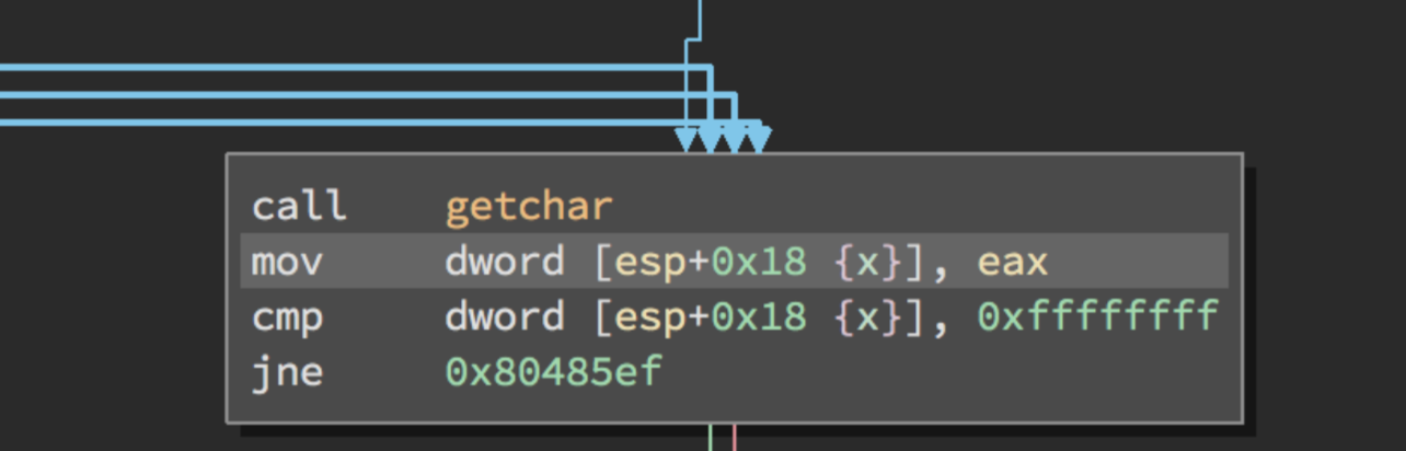 Para comprender mejor el código directamente nos vamos al desensamblado a partir de la llamada a la función getchar()