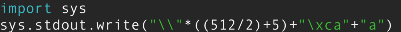 - Decrementar el puntero la mitad del buffer más 5 y luego sumarle \xca que sera lo que se le escriba. El último carácter no implica nada solo una flag para orientarnos mejor en memoria.
