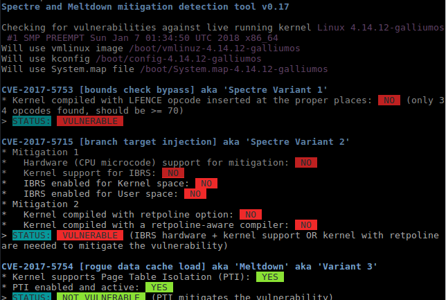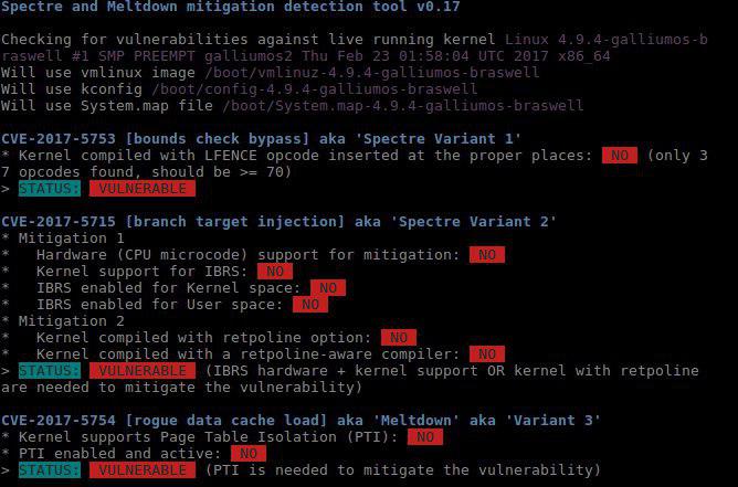 git clone https://github.com/speed47/spectre-meltdown-checker.git cd spectre-meltdown-checker sudo sh spectre-meltdown-checker.sh