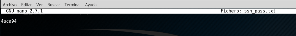 Vamos a sacar el hash md5 y acto seguido hacernos un pequeño diccionario para el pass con los primeros 6 caracteres del hash md5 obtenido anteriormente: