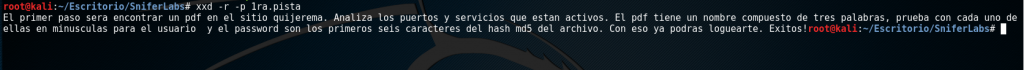 Esto nos huele a que dentro de este hexadecimal hay algún mensaje, así que vamos a comprobarlo. Para ello y acostumbrarnos a la consola vamos hacerlo desde ella, para saber más de este comando, os dejo información de él resumida.
