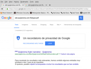 Vayamos a quijerema para buscar ese pdf, para que sea algo más sencilla la búsqueda, recurrimos a otra técnica que siempre tenemos en mente: dorks.