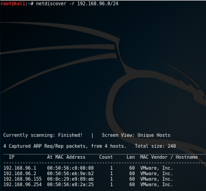 veamos los puertos y servicios que hay en la máquina objetivo. Para ello me gusta emplear el comando netdiscover -r