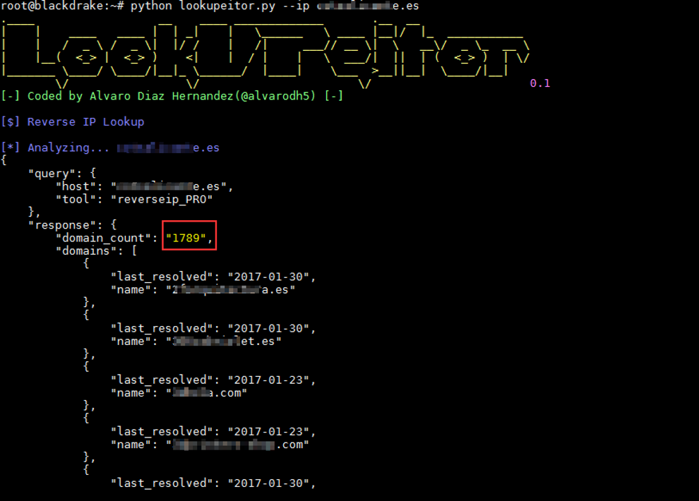 Para descubrir nuevos objetivos usaremos Reverse IP LOOKUP que se encarga de revisar los registros A de los DNS de muchos dominios (obviamente ya analizados) encontrando webs con las que comparte servidor.