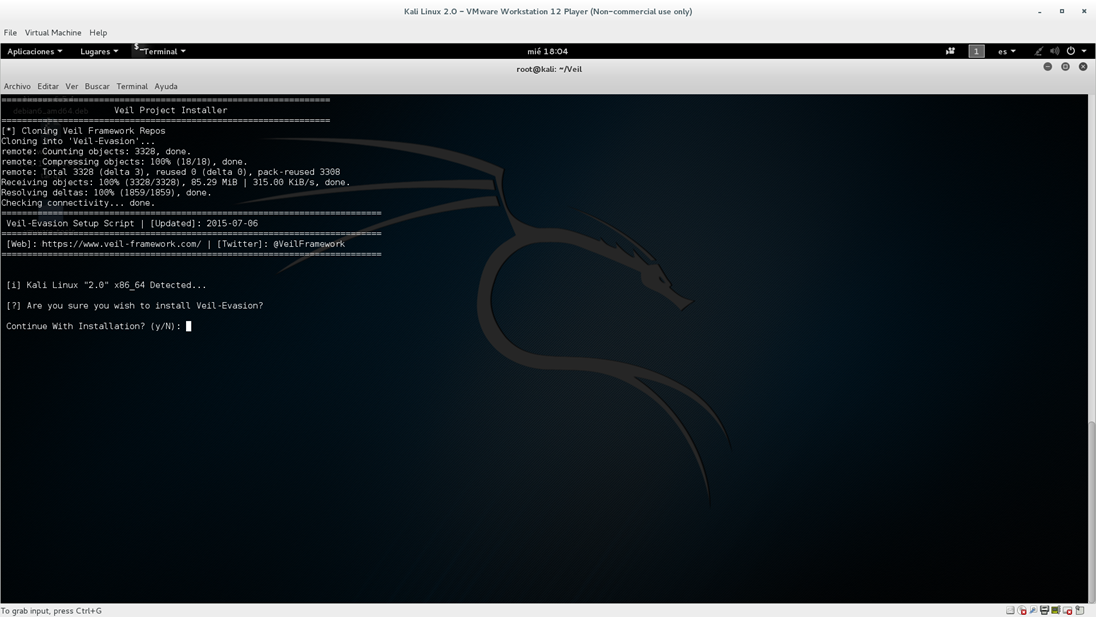 Una vez tengamos la carpeta de Veil entramos y ejecutamos /Install.sh. Recomiendo la lectura en github de los pasos y las condiciones que se han de cumplir antes de instalar la herramienta, para que no exista ningún tipo error.